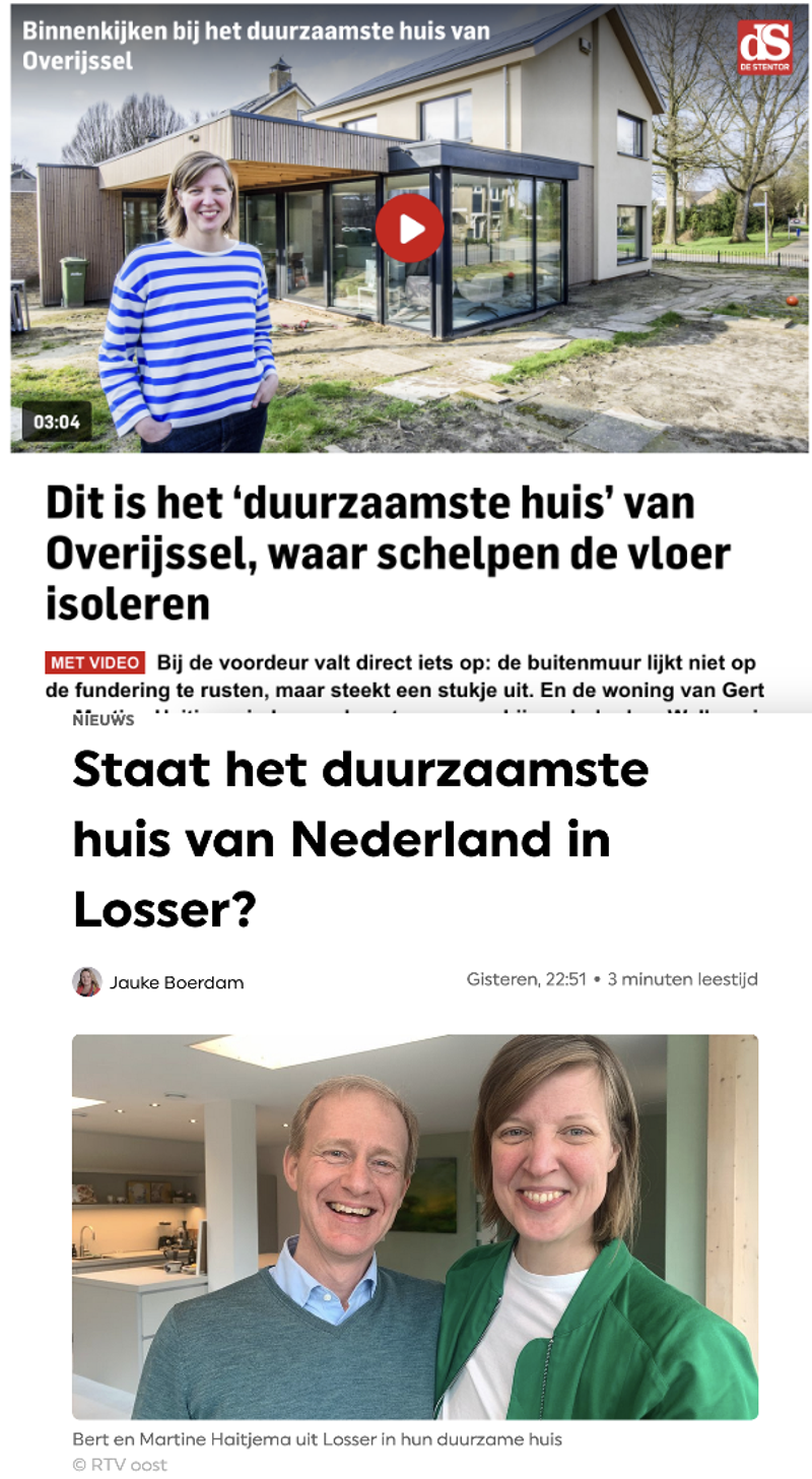 Op de site van Stentor en RTV Oost zijn meerdere interviews en filmpjes te zien over het duurzame wonen van de familie Haitjema.