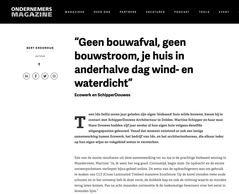 In het Ondernemers Magazine vertellen Martine van Schipperdouwesarchitectuur en Ido van Ecowerk over dit project in Manderveen en de samenwerking.